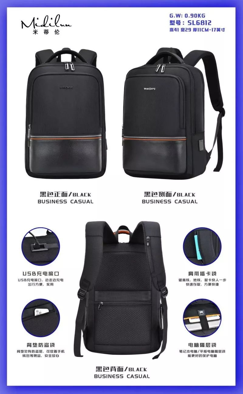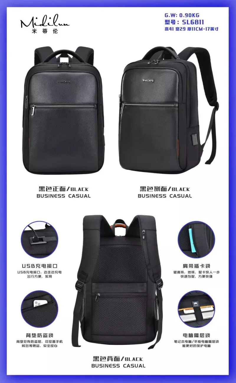 Бизнес чантите за лаптоп Midilun имат голям капацитет и удобен капацитет за съхранение, в който могат да се съхраняват 15-инчови лаптопи за лесно съхранение и удобно транспортиране. Включва чанта с отделение за компютър, чанта за телефон, чанта за лична карта, основна чанта за съхранение, предна хоризонтална чанта с цип и основна чанта за съхранение, която може да побере 15-инчови компютри, iPad, бележници, списания A4, портфейли, телефони и др. Чанти за лаптопи за бизнес производители, които не са изключителни, не желаят да пътуват, не желаят да бъдат обикновени, поставят оборудване за цял ден и създават малка кутия за оборудване. Чанти за лаптоп на едро за бизнес Хардуер с текстура, пълен цвят и триизмерна форма, подбрана материя, водоустойчива и устойчива на надраскване, избрана полиестерна тъкан с висока плътност, устойчива на разкъсване, водоустойчива и устойчива на надраскване, по-добра защита на компютъра.
